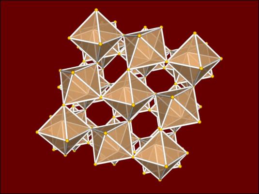 Description : Octahedra have their faces attached above the triangles of one orientation and below the triangles of the other orientation. The transformation of the triangle tiling transforms the octahedra in their layers. At the maximum expansion the empty space forms cuboctahedra, and these cuboctahedra close down to form a pair of tetrahedra at the minimum expansion.