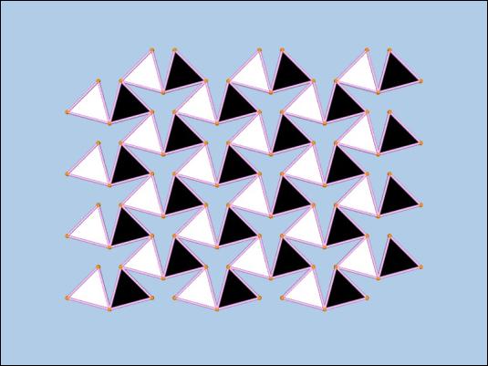 'Jitterbug' of a triangle tiling of the plane. The different colour triangles have opposite orientations.