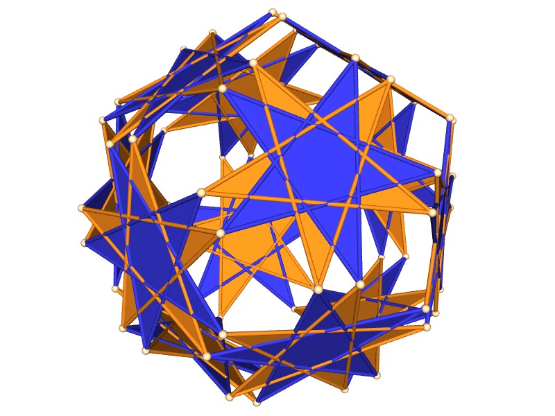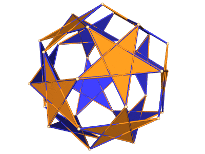 Chiral polyhedral transformation of a small stellated dodecahedron.