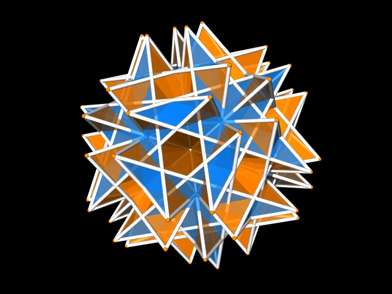 An idealised truncation of a great icosahedron from -infinty to +infinity. The model is scaled to have a circumsphere of constant size.