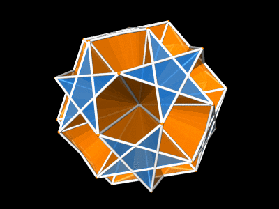 An idealised truncation of a great icosahedron from -infinty to +infinity. The model is scaled to have a circumsphere of constant size.