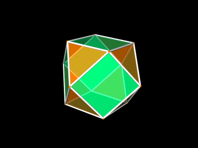 Transformation between an octahedron and a dual cube by truncating to the mid-points of the edges and then switching models.