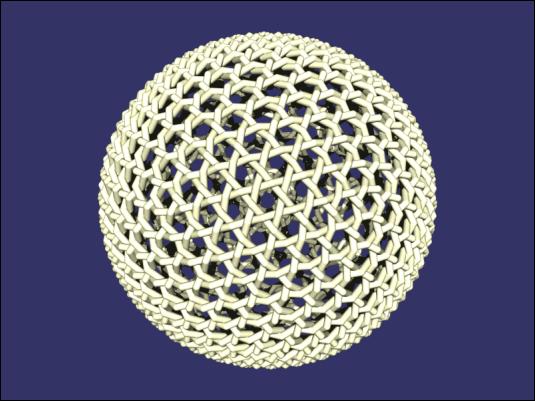 A woven Class III 6,2 icosahedral geodesic sphere.