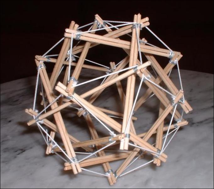 rhombi of the rhombic dodecahedron. The struts are arranged as 6 squares,