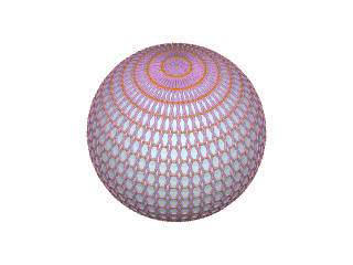 Twisting spindle torus with a ring radius of zero. Its surface wraps twice around a sphere
