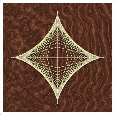 Description : The astroid is the path followed by a point on the circumference of a circle of radius one unit as it rolls inside the circumference of a circle of radius four units. It is formed here from its tangents by choosing a length L and then joining points on the x-axis to points at distance L on the y-axis. All the tangent strings in the image have length L.