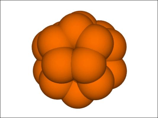 Description : The vertices reciprocal to the polyhedral jitterbug's face planes are shown as balls. Their positions have been adaptively scaled to fit on the screen in order to help show their relative positions.