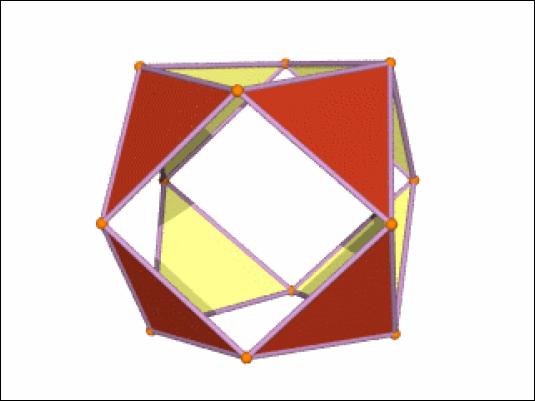 Jitterbug of a single cuboctahedron to an octahedron and back again, showing the triangular faces.