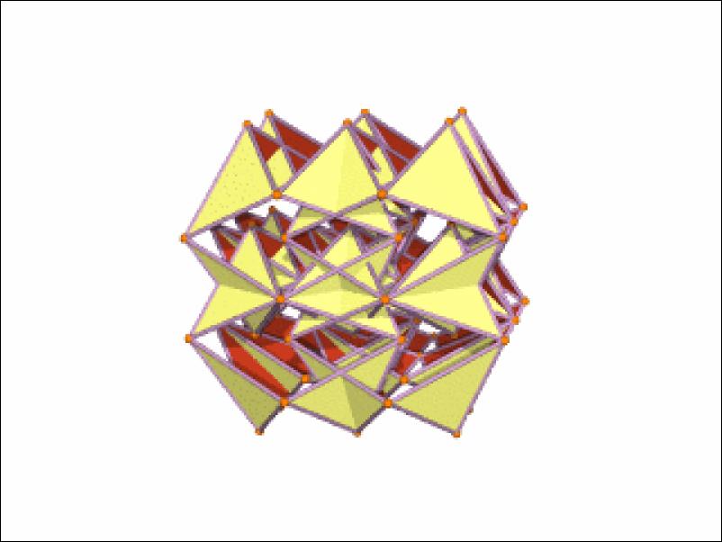 Jitterbug of a cuboctahedron lattice with both cuboctahedra and the lattice reversing completely, showing the triangular faces.