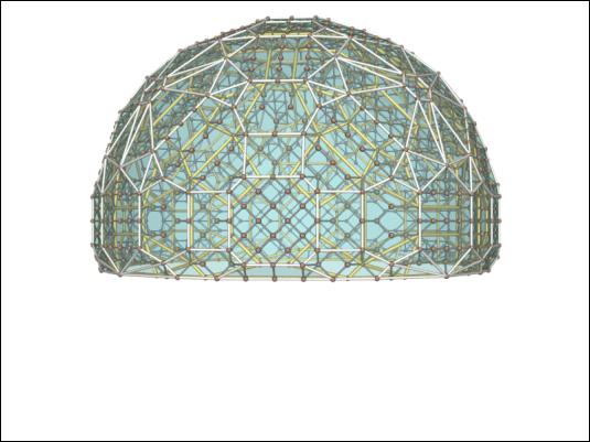 Dome filled with octet truss. The outer frame is the convex hull of a root 152, and the inner frame is the convex hull of a root 135.