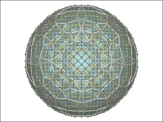 Dome filled with octet truss. The outer frame is the convex hull of a root 160, and the inner frame is the convex hull of a root 135.