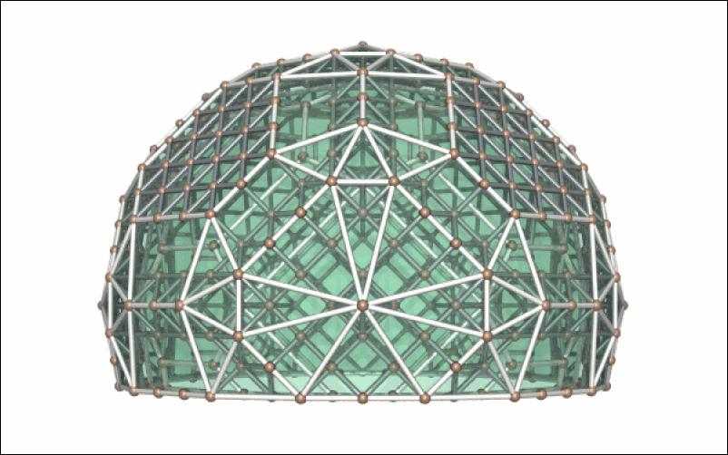 Dome filled with octet truss. The outer frame is the convex hull of a root 50, and the inner frame is the convex hull of a root 40.