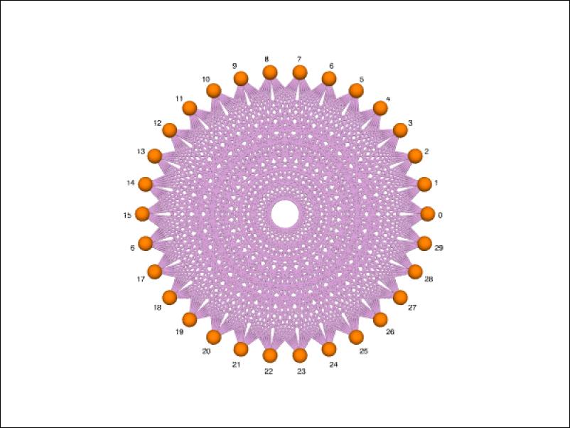 Circle of 30 points each connecting to series of 6 balls starting 8 balls later (each ball has 12 connections).