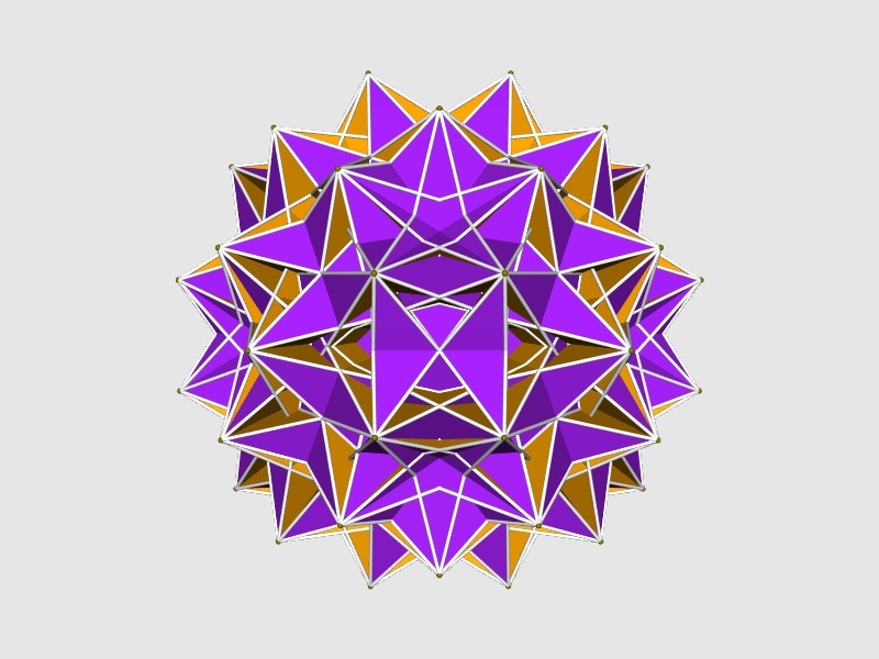 A uniform polyhedron, coloured using off_color. The faces are
