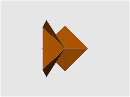 Description : The -v option with two numbers matches a vertex on the brick (second index number) with one on the base (first index number) by a translation. In this example a pentagonal pyramid is turned on its side and has its apex aligned with a square pyramid. Notice that the brick was specified as '-' to indicate that it should be read from standard input.