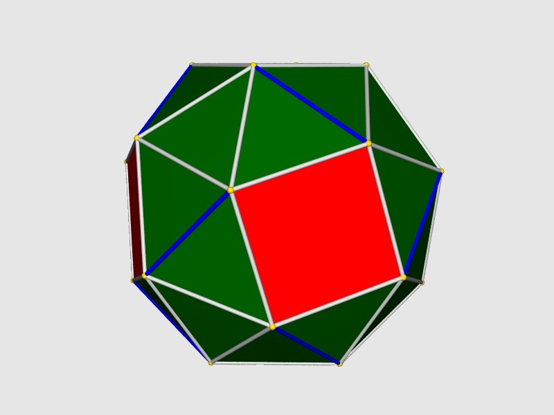 Description : Make a snub cube by aligning triangles with the 3-fold axes and pentagons with the 5-fold axes of icosahedral symmetry. Twist the polygons by 28.53... degrees to produce a snub cube. Use twister notation.