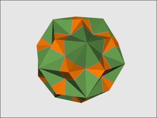 Make an icosidodecahedron dual (rhombic triacontahedron) origami. Note that the