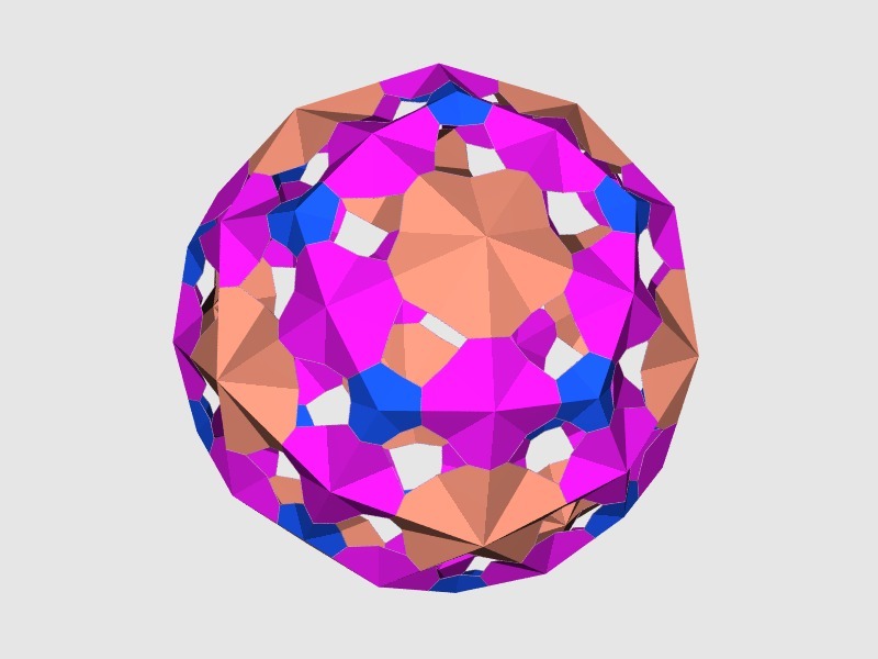 Make a rhombicosidodecahedron dual, truncate modules to 1/3